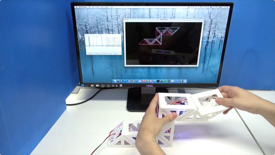 | I study virtual/augmented reality systems that enhance the experiences in life environment and entertainment contents. "SHAPIO" is a gaming controller that can transform its own three-dimensional shape depending on the gaming situations. "OKANASAL" is a pair of chopsticks that enhances the food flavor by feeding retronasal olfaction. |