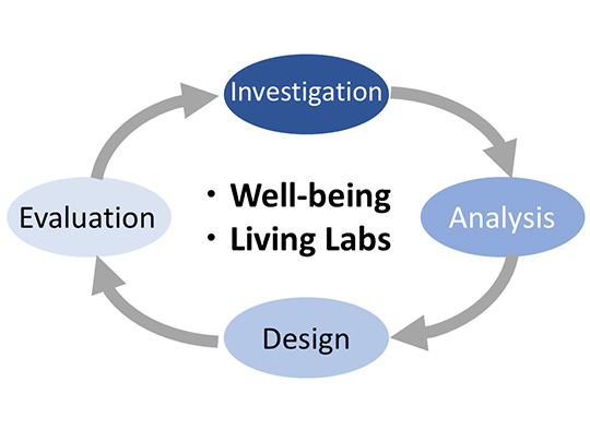 | We study the design of a Well-being society. We will conduct research while co-creating with various people in the real field, such as by participating in Living Labs. Using human-centered design and UX design processes, we investigate and analyze people’s activities to discover essential problems, create solutions in the form of applications, and evaluate them to realize valuable solutions. We will also study on supports communication and universal design that realizes a cohesive society. |