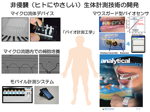 | Our laboratory focuses on sensors and devices based on electrical and electronic engineering, bio-instrumentation engineering, and bio-devices. We promote research on advanced electronics for applications in healthcare, medical diagnostics, and Internet of Human (IoH). We develop healthcare devices and human-friendly wearable sensors based on the measurement of human-derived components. We promote "sustainable engineering" to contribute to a "sustainable society. |