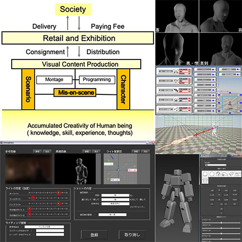 | In this project, we research the design of scenarios, characters, and direction in movies and anime production. In movies and anime production, scenario is a blueprint that describes how to convey a theme or concept. And scenario is then acted out by the characters. In other words, the scenario and characters are the two pillars that support the entire movies and anime. Then decided by direction and mise-en-scene how to present these elements. Therefore, it is important to design these three elements well. In this project, we focus on scenario writing, character making, and direction methods with the goal of creating a method that allows anyone to design movies and anime that accurately reflects creator's intentions and themes. |