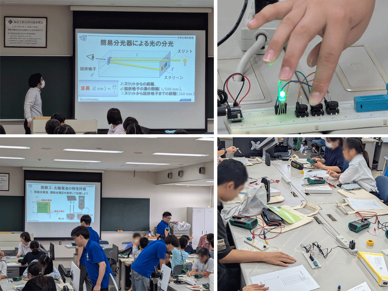 9月13日(土)の第2回目の科学教室は、東京工科大学を会場とし、「光の性質を解き明かそう! 虹の秘密と太陽光発電」と題し、光の分光実験や合成実験、太陽電池の性能評価を行いました。