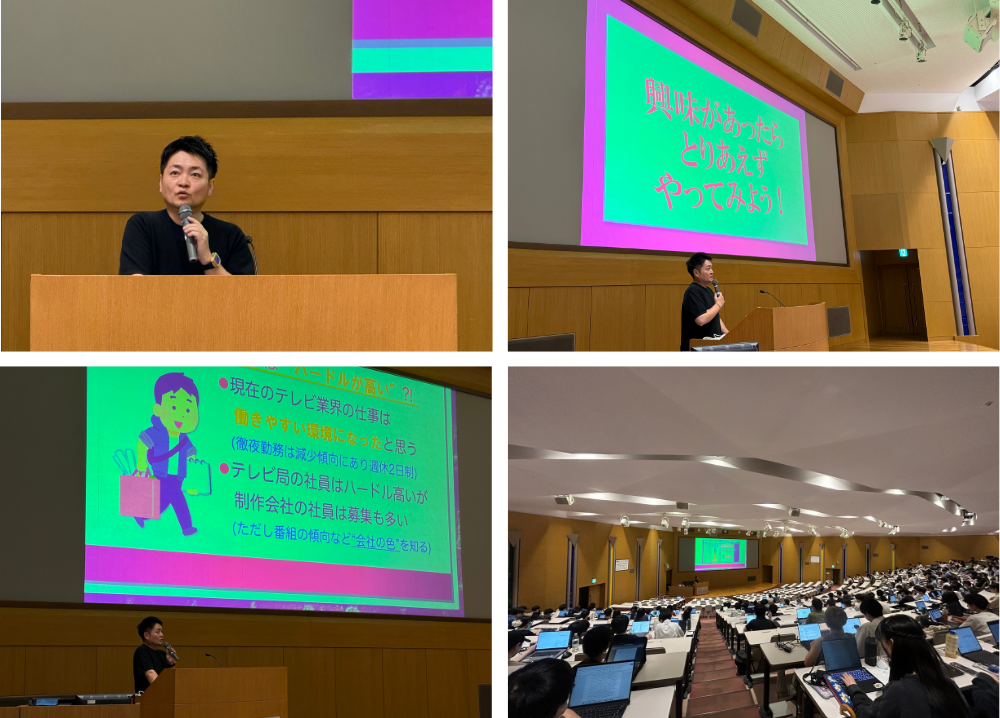 2025年9月30日(火)「映像文化論」(担当:メディア学部山脇 伸介教授)の授業において、TBSテレビ「ひるおび」(平日10:25〜13:54生放送)ディレクターの穂積繁氏が「テレビ・ディレクターの仕事」を紹介しました。