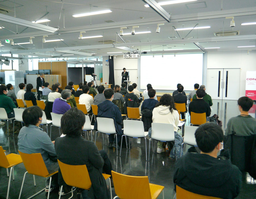 ワークショップは、佐野睦夫氏(大阪工業大学 イノベーションデザイン教育研究センター 所長・学長補佐)からの始めの挨拶、続いて八馬遼氏(NVIDIA Research/博士(工学))からの招待講演でスタート。2フロアにまたがった会場で、各セッションが行われました。