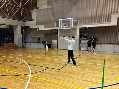 測定には、日本学園高等学校男子バレーボール部でトレーナーをしているすみだ運動器リハビリテーションクリニックの村上純一先生(理学療法士)にご協力いただくとともに、本学理学療法学専攻の1年生1名も参加しました。専門家と学生の連携により、質の高い測定体制を構築できました。参加した学生からは「これから大学の講義だけでなく、もっと色んなものを見て、聞いて、知って、自分の力にしていきたいと思いました。」との感想が聞かれ、通常の授業では体験できない貴重な実践的学習機会となりました。