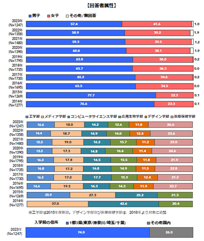 | 調査対象: | 2023年の東京⼯科⼤学新⼊⽣(⼋王⼦キャンパス、蒲⽥キャンパス) | |