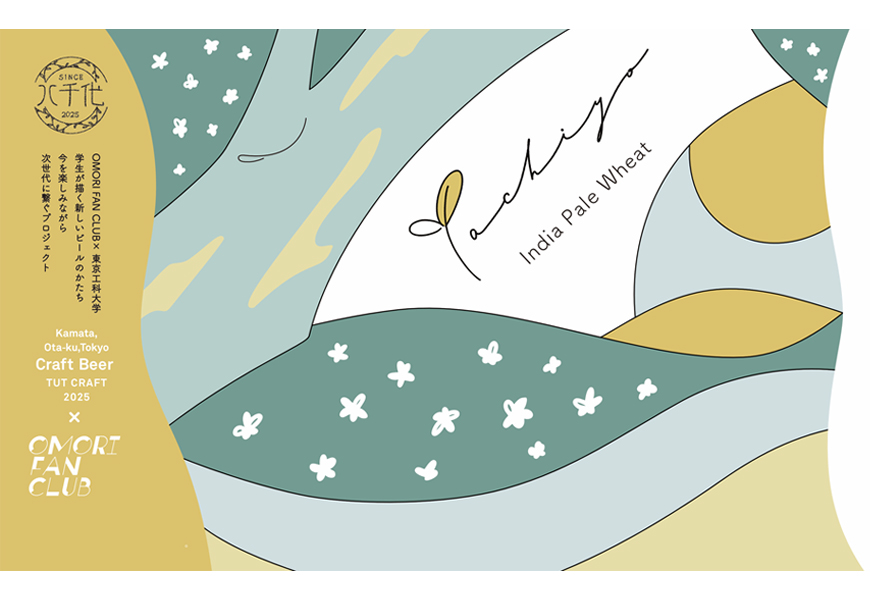 本企画の学生チーム(4名)は、同社の代表商品の一つで、大田区大森ゆかりの作家・宇野千代の人物像を掘り下げてコンセプトに反映させたユニークなクラフトビール「CHIYO」に感銘を受け、同商品に込められた想いを継承し、若い世代へ繋ぐ架け橋となるビールを発案。参加チームの中で唯一同社を指名して提案し採用されました。同商品は、若者らしい自由な発想から生まれた苦味のないインディア・ペール・ウィートで、副原料には「和」を感じさせる茶葉を提案。3種のホップアロマ(注2)による複雑な香りに加え、緑茶由来の爽やかさと渋みのある後味が全体のバランスを調和させています。商品名は、大森の街に長く愛されるビールであってほしいという願いを込め千代よりも長い年月を示す「Yachiyo (八千代)」とし、ラベルデザインは、既存製品の地層のインスピレーションを継承しつつ、新しく芽吹いた若葉が成長し、大きな木となり花を咲かせ世界に広がっていく様を表現しました。